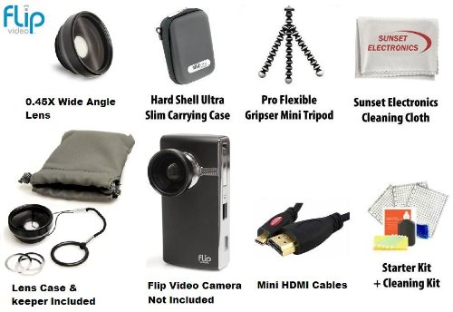 Best Value Digital Flip Lens Kit For The Digital Flip UltraHD Video Camera 2HR Camcorder 3rd Generation, Flip HD, Mino HD, Slide HD, U32120B, U32120W Package Includes Professional Extra Wide Angle Lens + Slim Protective hard Case + Professional Gripster Tripod + Micro HDMI Cable + LCD Screen Protectors & More Feature
