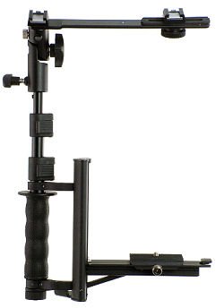 This sturdy camera bracket flips quickly from horizontal to vertical and maintains a consistent flash position and lens-to-flash distance, the ultimate flash accessory for event & wedding photography. Features: Height light bar supports small umbrella or softbox, horizontal shoe bar tilts & supports 2 compact flashes. Large "Quick Release" camera mount fits all digital SLRs, with universal tripod mount on bottom.Available at Amazon