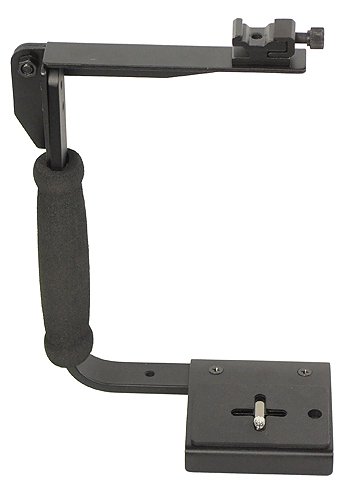 The Deluxe Professional Flash Bracket is a durable, lightweight flash- and camera-rotating bracket built for convenience and versatility. It can rotate 180 degrees for both horizontal and vertical shooting. Compatible with most digital and 35mm cameras (excluding those with battery packs or motor drives), it provides a comfortable and simple way to extend a flash mount away from the camera body to reduce shadows and eliminate red-eye.Available at Amazon
