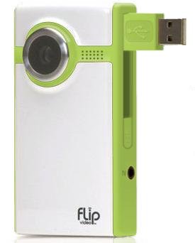 he compact Flip Video Camcorder makes it easy to capture picture-perfect memories at home or on the go. Built-in software gives you everything you need for your standing ovation. 640x480 Video Resolution at 30 frames per second Flip-out USB arm plugs directly into your computer for easy sharing and archiving NTSC TV Out with included cable to watch videos on television Built-in software for instant viewing, editing, and one-click emailing Integrated video uploading to AOL, MySpace, YouTube and other video sharing sites Easy to capture still pictures from video Simple editing tools let you make custom-edited movie mixes with music Personal library feature helps you organize all your videos Video Bitrate - 2.8Mbps (average - auto adaptive algorithm) Video Format - Advanced Profile MPEG4 AVI Lens Type - Fixed Focus (0.8m to infinity) Aperture - f/2.4 (fast lens for great results in low-light environments) Interface - 8 Buttons (Power, Play, Delete, Record and 4 way navigation) Battery Life - Up to 2 hours with 2x AA Alkaline batteries, up to 5 hours with 2 x AA Energizer e2 batteries System Requirements - Intel Pentium 4 2.0 GHz, 512 MB RAM, Windows XP SP2 or Windows Vista, Windows Media Player 9.0, Microsoft DirectX 9.0, PowerPC G4 1.0 GHz, Mac OS X 10.3.9, SVGA display (1024x768) monitor and video card, and QuickTime 7 Dimensions - Height 4.12 x Width 2.25 x Depth 1.25Available at Amazon